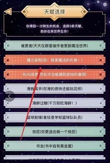 刚开始想体验这个世界的玩家,可在游戏里点击转生,接着选择魔法世界的天赋“魔力亲和”,就能顺利转生到魔法世界。这里的玩法和修仙等其他世界不同,会遇到不少不同的选择,每个选择背后的结果都不太一样。还有很多怪兽需要大家去战斗,它们能快速提升技能等级,而且每个怪物都有不同弱点,只有掌握这些弱点、选择对应的技能,才能最快击败它们。