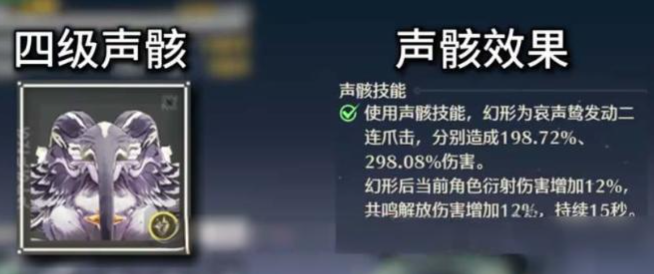 2、处于第4级声骸阶段时,小编建议优先选择携带“”,该声骸能够显著提高衍射的伤害加成与大招的伤害加成,在技能效果和机制层面都与主角高度契合,可完美实现增益效果。