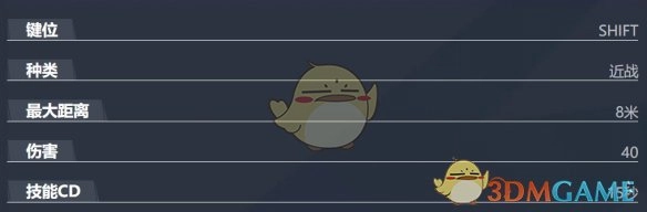 Shift - 半月斩:迅速抽出武士刀,朝着前方迅猛劈砍,从而将敌人击飞。