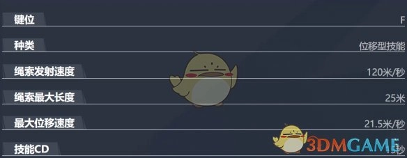 F - 月如钩:朝着前方射出钩锁,把自身牵引过去。