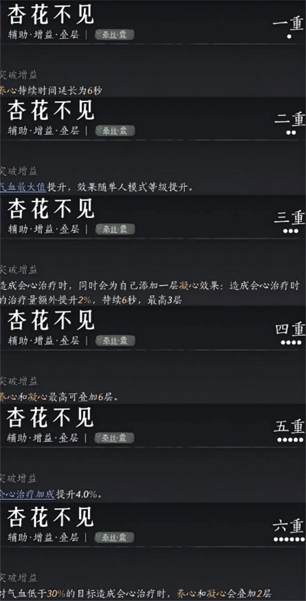 杏花不见:这个心法提升你为坦克提供持续治疗的能力,确保在Boss战中,T能够获得足够的血量恢复。