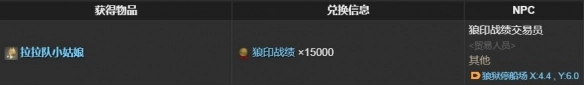 可于npc【狼印战绩交易员】处,用15000个【狼印战绩】进行兑换获取。