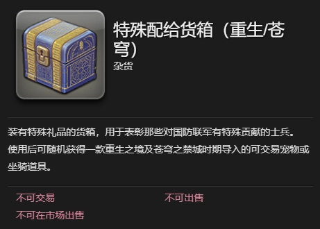 开启特殊配给货箱(重生/苍穹系列)会有物品掉落。