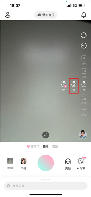 之后就能看到拍照已经设置为三秒延迟了。