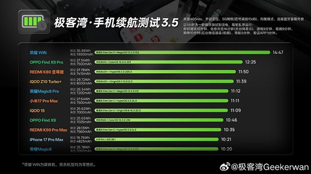 超大电池带来的是断层领先的续航表现。小白测评、极客湾Geekerwan、WHYLAB、新评科技、请不要叫我测评君、凰家评测等多家数码科技媒体第一时间公布了荣耀WIN系列产品的续航测试数据,无论是3小时榜单、6小时榜单还是“极限续航总榜”,从各个维度衡量,荣耀WIN系列两款产品的续航表现都具备绝对领先的优势,真正做到了“续航实力拉满”。