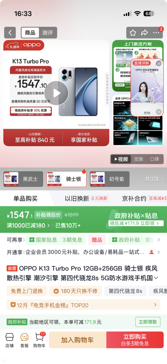 在价格上,OPPO K13 Turbo Pro补贴后的起售价仅1549元(12GB+256GB版本)。对于预算有限的用户而言,它能带来近乎旗舰游戏手机的使用体验——尤其是疾风散热引擎可保证长时间游戏时性能稳定不下降,7000mAh的大电池更能完全消除续航方面的顾虑。和同价位产品对比,OPPO K13 Turbo Pro在延续大电池、高性能芯片这些传统优势的基础上,还新增了独家的主动散热系统,这一差异化亮点对游戏玩家来说极具价值。此外,满级防水、RGB灯效等功能的加入,也让产品的性价比得到了进一步提升。