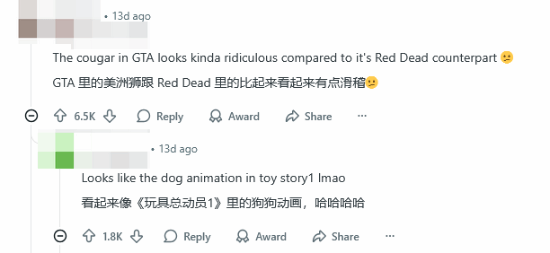 你或许会以为Rockstar Games的粉丝们此刻正焦急地盼着《GTA6》发售,或是忙着仔细研究预告片和宣传物料里的每一处细节。但根据GameRant的报道,在《荒野大镖客:救赎》的Reddit社区中,近期热度很高的帖子之一,是用名为Natural Vision的Mod对比《给他爱5》与《荒野大镖客:救赎2》动物建模的内容。