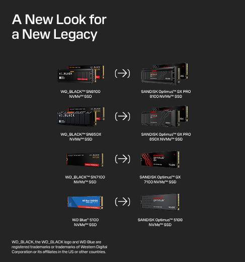 SANDISK Optimus GX:对应原来的 WD_BLACK 系列。面向追求极致加载速度、大容量与高电力效率的游戏玩家。