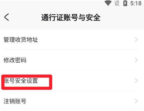 2、如图所示,在设置页面打开"通行证账号与安全"。