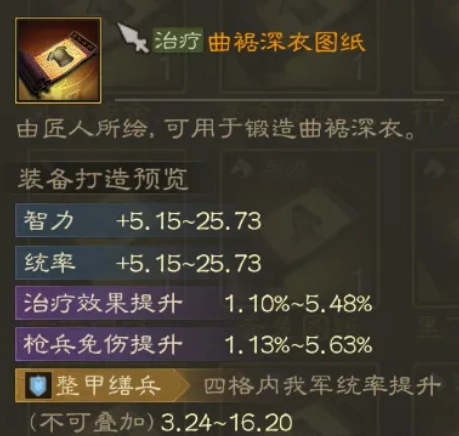 枪兵系治疗类的传统装备只有一套,没有其他选择,适合SP华佗、孙鲁育这类携带治疗技能的武将使用。