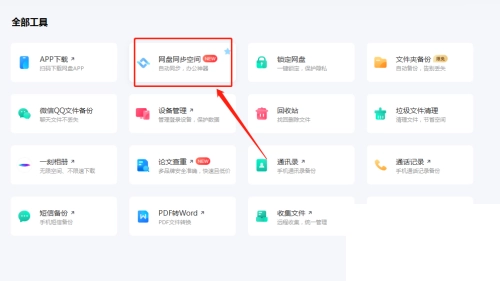 4.备份完成后,依旧在工具页面里,点击【网盘同步空间】就能启用网盘同步功能,达成文件的实时同步与便捷管理。