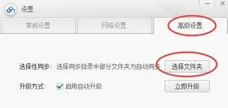 2. 随后,在弹出的菜单里挑选“设置”选项。进入“设置”对话框之后,需找到并点击“高级设置”选项,再从中选择“选择性同步”。