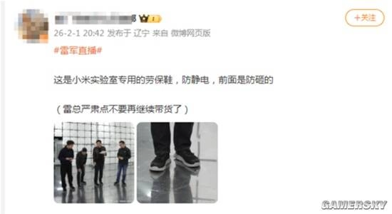 直播的时候,有网友发现雷军和实验室里的研究人员穿的鞋子是一样的,旁边的工作人员马上说明,这是实验室专门用的劳保鞋,是场地安全方面的标准配置。