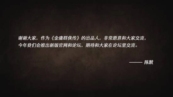 另外关于音乐品质不够精良的问题,官方表示已邀请蔡志展老师(《金庸群侠传》96版的作曲者)为游戏创作配乐。