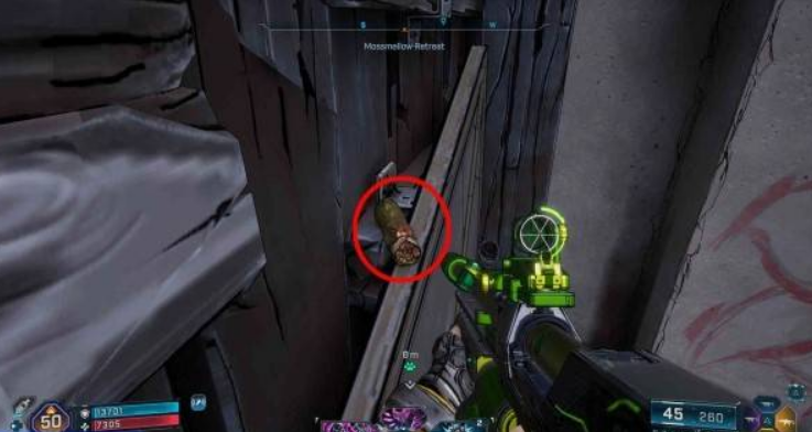 卷饼在这个金属结构的最顶部,或许得稍微调整一下站位才能看清楚。玩家只需用远程武器瞄准并射击,把卷饼破坏掉就能完成收集了。