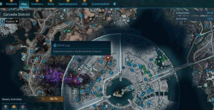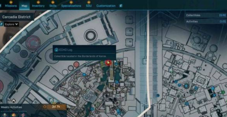 接下来前往卡卡地亚区北侧的建筑,从北侧外墙攀爬而上进入建筑内部。沿着内部走廊一路前行,直至抵达ECHO日志所在的位置。
