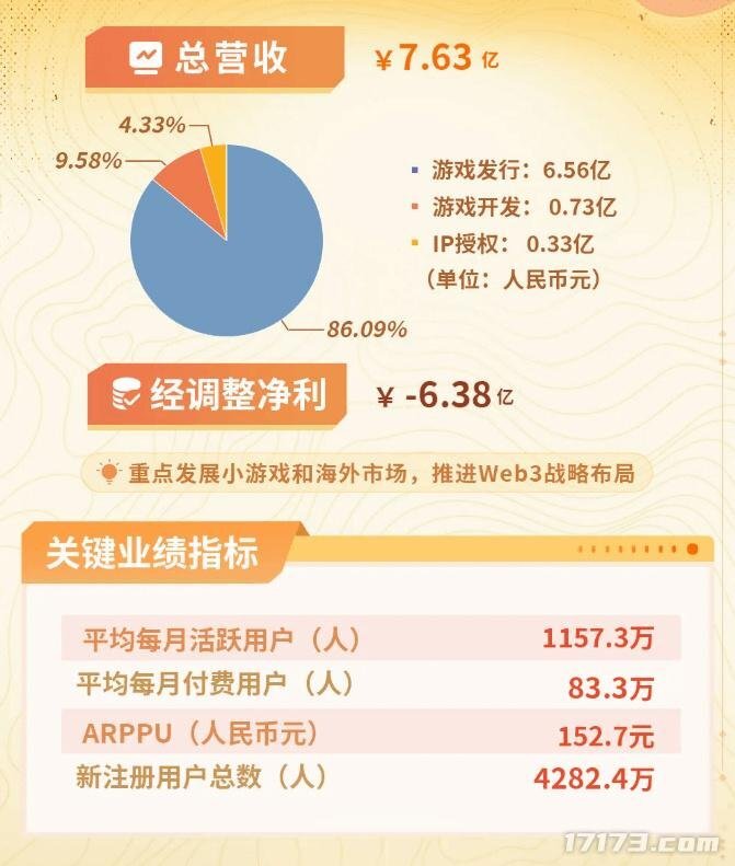 中手游发布了截至2025年6月30日的中期业绩报告,报告显示该公司上半年总营收为7.63亿元,净亏损达6.38亿元。
