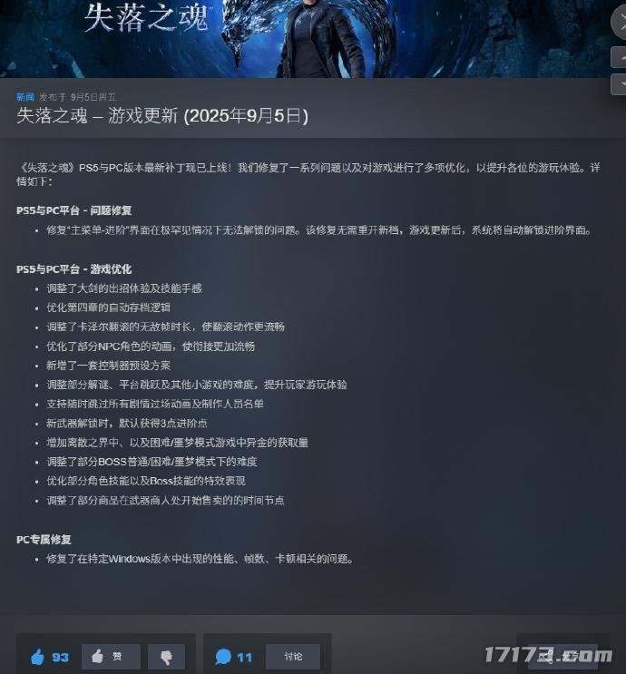 2025年9月6日消息,国产动作冒险游戏《失落之魂》(Lost Soul Aside)近期正通过更新补丁不断优化玩家的游戏体验。在9月5日推出重要修复补丁之后,游戏官方今日又在Steam平台发布公告称,后续将在一段时期内密集推送更新补丁,持续解决游戏中存在的问题并进一步提升游戏品质。