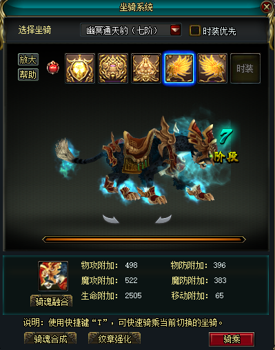 每一匹坐骑都具备独一无二的属性,哪怕是同类型的坐骑,它们的属性也各不相同。给坐骑喂食,不仅能让它的属性能力得到提升,等满足条件后还能完成进阶——这时候坐骑的战力会有巨大飞跃,外观也会变得更酷炫、更霸气!坐骑的等级越高,给主人带来的属性加成也就越丰厚。而且,所有坐骑都能明显提高角色的移动速度。
