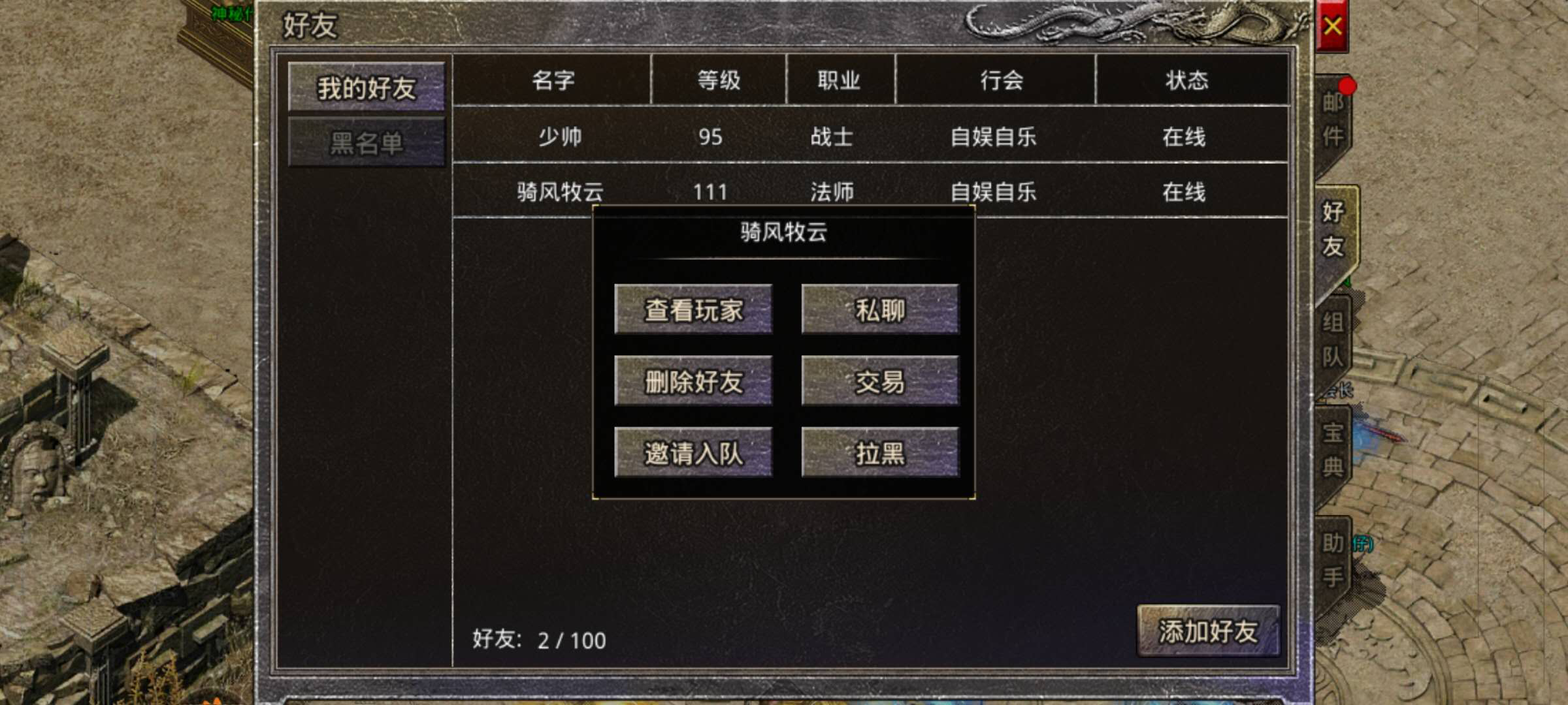 除了两个邀请功能外,好友栏中还支持查看和交易等操作。查看功能可让玩家了解好友当前的装备、属性等信息,以便及时掌握好友动态;交易功能则允许好友之间进行装备、道具等的买卖,这也是游戏里常见的交易方式。