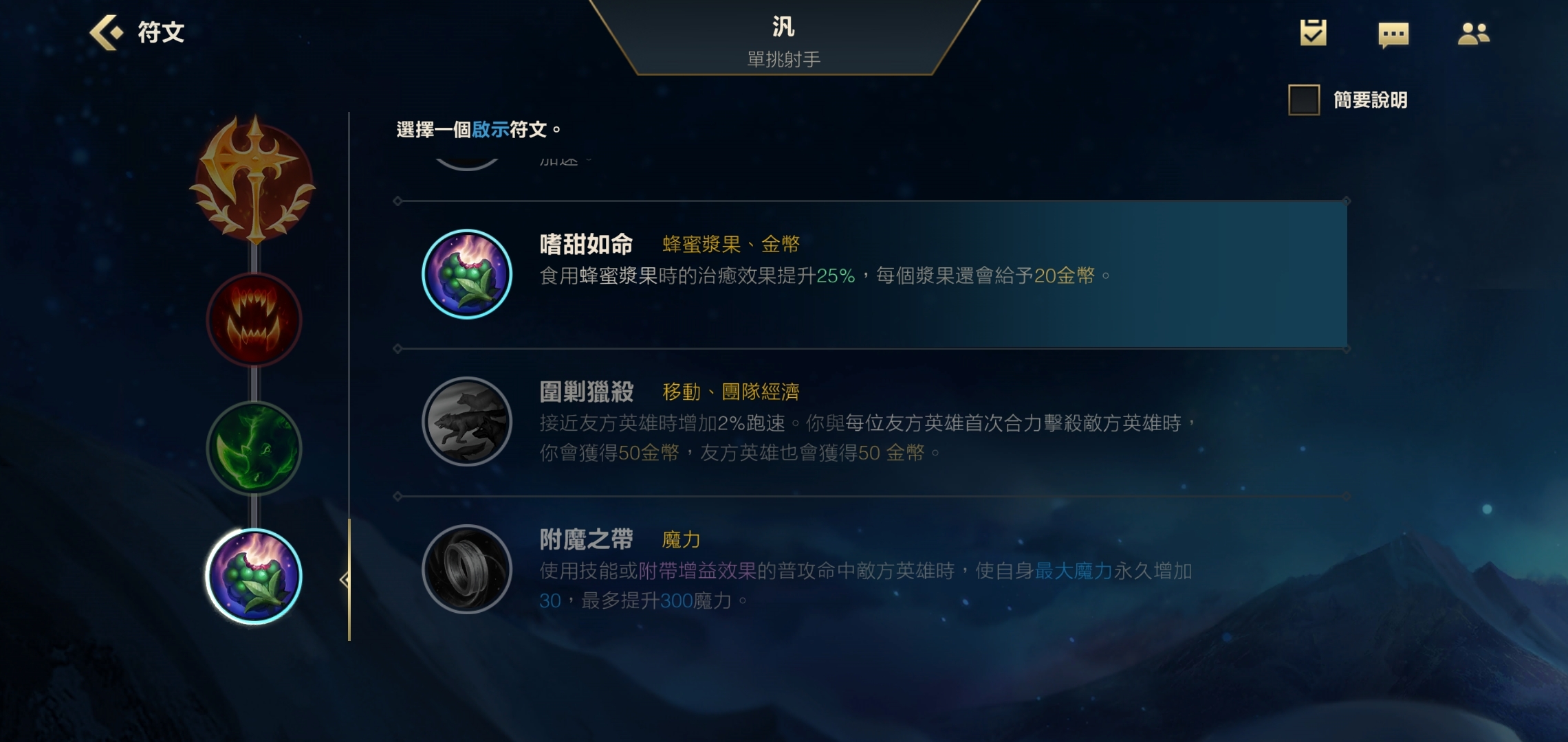 最后一个副系天赋选择甜食派即可,该天赋不仅能增加食用果子时的回复效果,还能让每个果子额外为我们带来20点金币收益。
