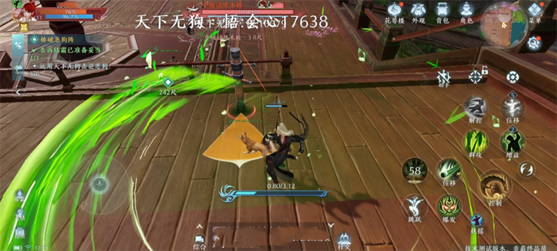 这是一套灵活性极强的连招,既能突袭敌人也能展开追击,还能借助烟雨行的隐身与飞行效果规避敌方攻击,做到进退皆可自如掌控。这套连招的核心在于,要在烟雨行的飞行过程中释放亢龙,以此快速拉近与敌人的距离,同时让敌人难以防御;紧接着在亢龙命中敌人的刹那衔接拨狗朝天,使敌人失去反击的机会;随后在拨狗朝天击中敌人的瞬间使出棒打,从而彻底断绝敌人的逃跑可能。
