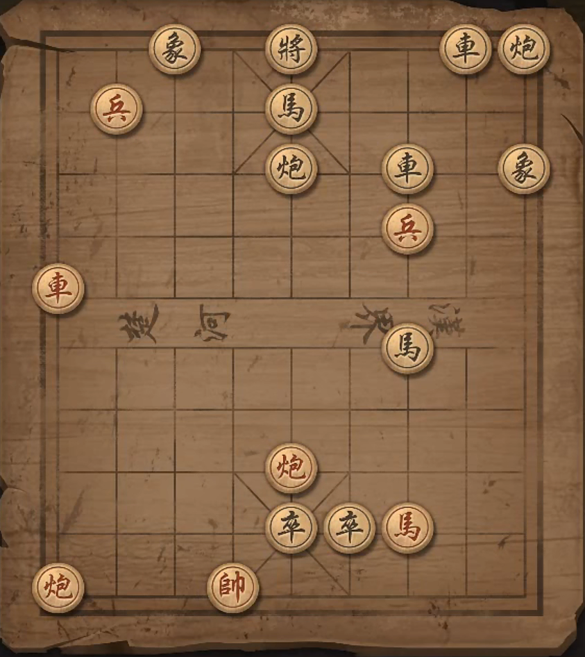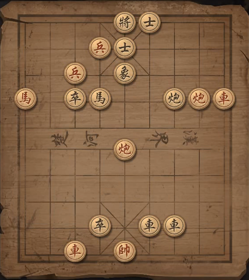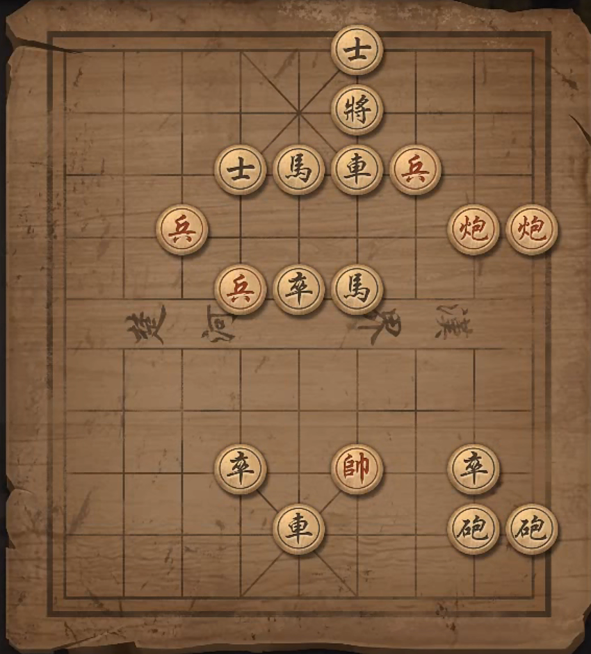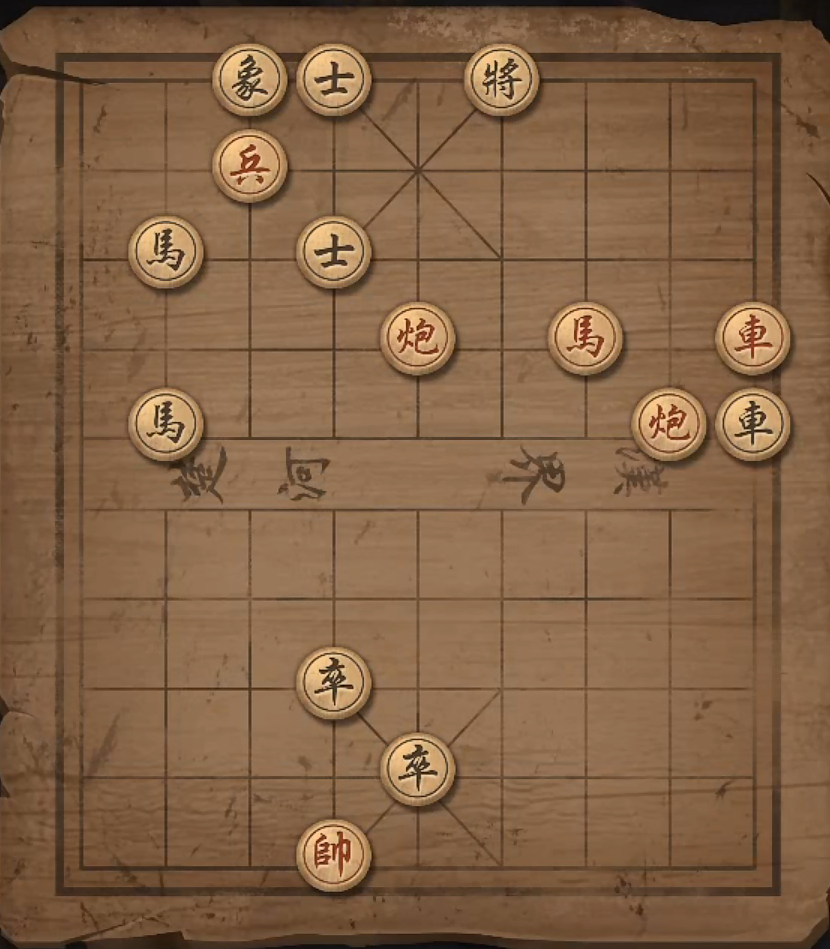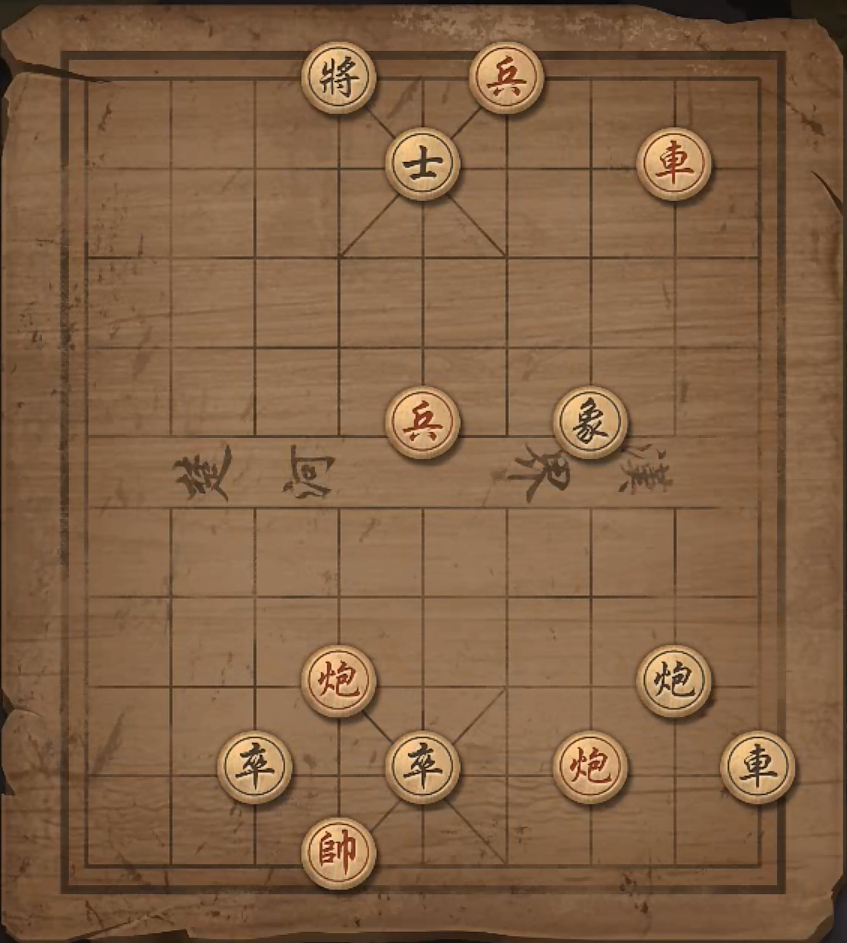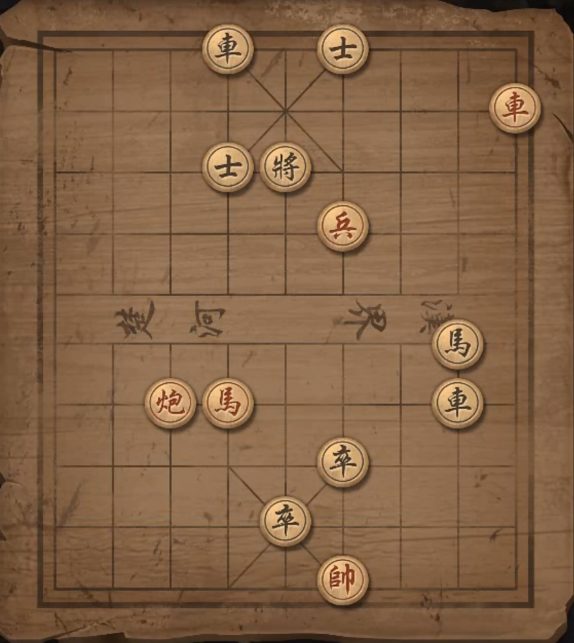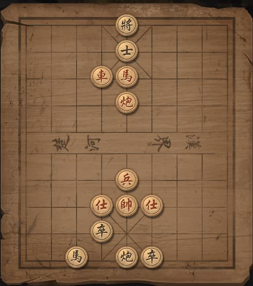残局七:兵向前走4进1,炮向前走7进4,车向后走1退1,炮再向前走7进1,车向前走1进1,马向前跳6进5,车向后走1退1,车横向移动1平4,将军。