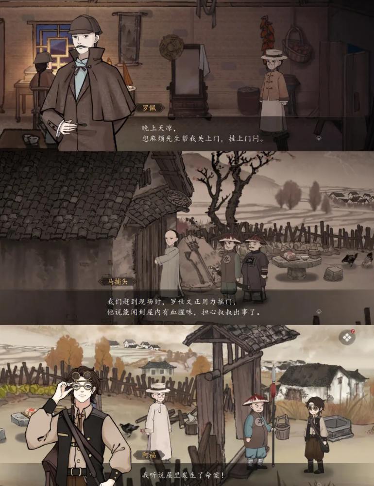阿福在游戏里的作用,我们可以拿第一关来举例说明。第一关的故事场景设定在罗佩家中,罗佩的身份是一名作家,他被人发现死在了自己的衣柜当中。沈仲平是第一个发现尸体的人,因此被列为了嫌疑对象。阿福作为沈仲平的助手,会协助我们对案情展开推理。下面是他在第一关中所做的具体事情: