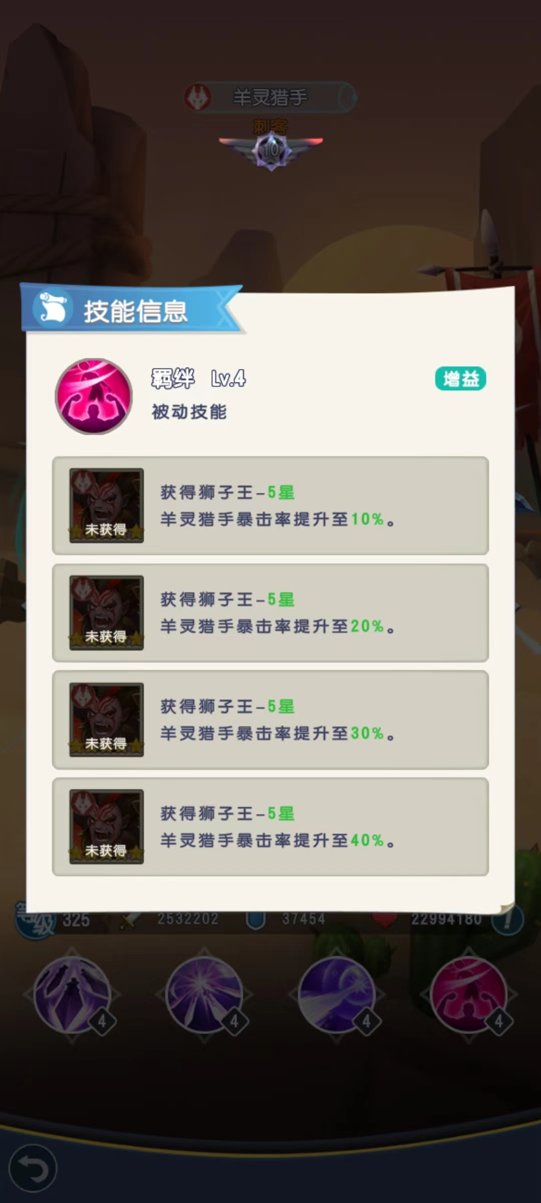 这个角色在当前刺客类型里单体伤害属顶尖水平,比自然系那两名输出还要高,培养成型后输出极为凶悍,能直接秒杀脆皮单位。不过关键在于必须激活羁绊技能的加成效果,其中最理想的搭配伙伴是狮子王,它能提升羊灵猎手的暴击概率,唯有如此,才能在后期实现每次攻击都触发暴击,达成真正意义上的全场秒杀。