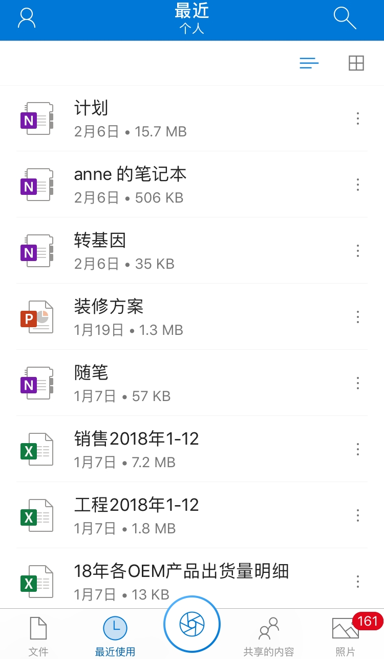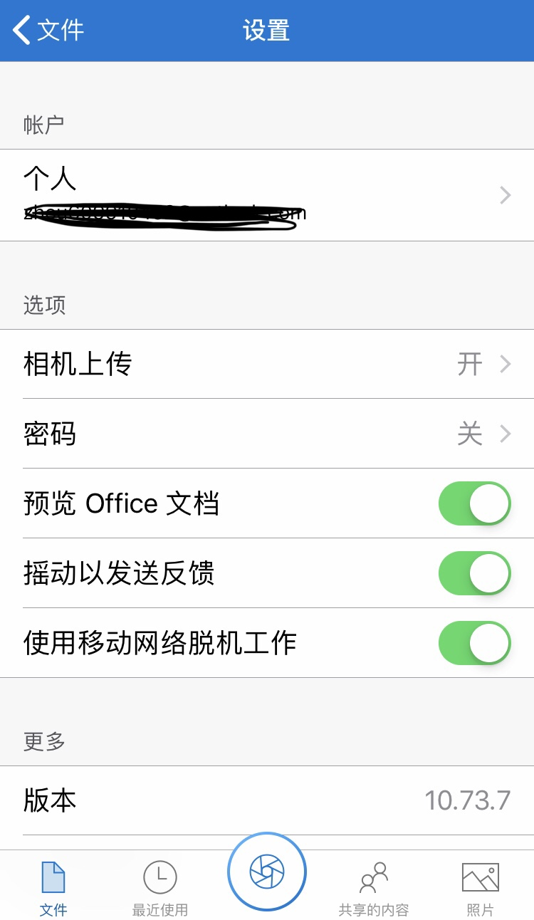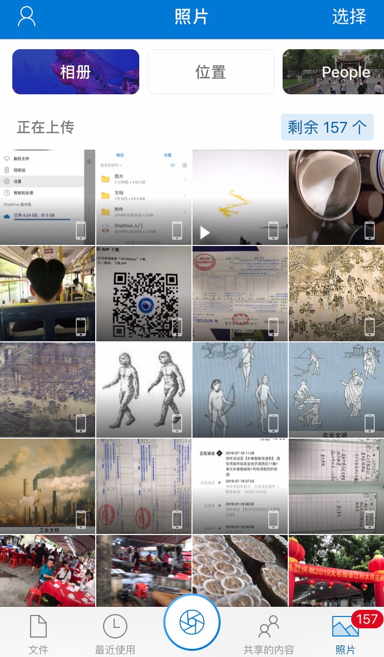 打开OneDrive应用后,界面上呈现出照片、共享内容、拍照、最近使用和文件这五大板块,接下来让我们详细了解各板块的使用方法。