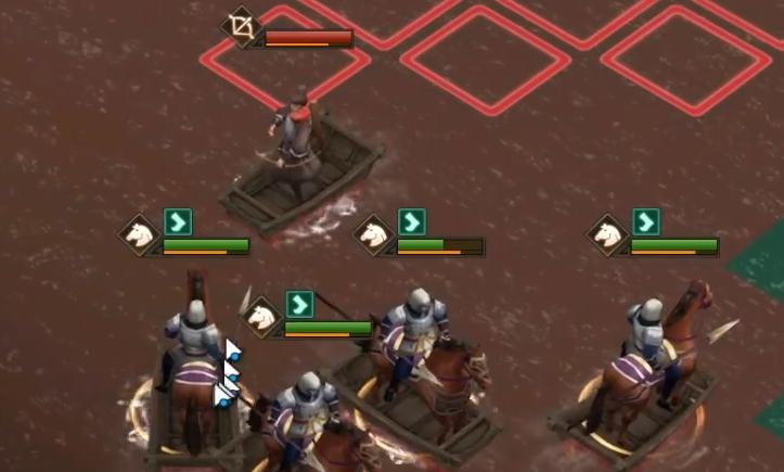 这是地形试炼中的一个,也是不少玩家觉得最难应对的试炼之一。该试炼要求玩家在30回合内完成挑战。此关卡我方是4人对阵敌方6人,我方兵种为骑兵,却出生在河里;而河岸上有6个弓箭手正对着我们。这一关玩家在数量上不占优势,兵种上还处于被克制的状态。不过我们有个优势,就是拥有一个特殊BUFF,能让移动力额外增加3点。这样一来,我们在水中能走4格,岸上的长弓兵却只能走2格。这种移动上的差距,正是玩家能在这个关卡取胜的关键所在。