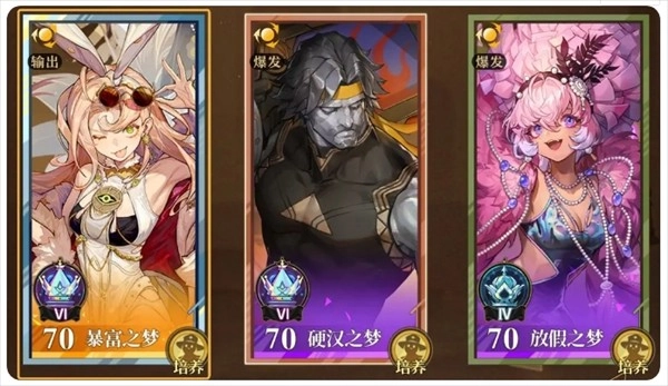 综合考量获取的难易程度以及通用性,此次提供的攻略以第一个配队为准,也就是暴富放假硬汉三人连珠队。