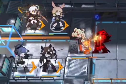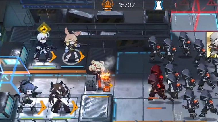 1按照如下图示顺序安排干员。所有狙击干员的朝向均设置为向右,古米放在最后部署。