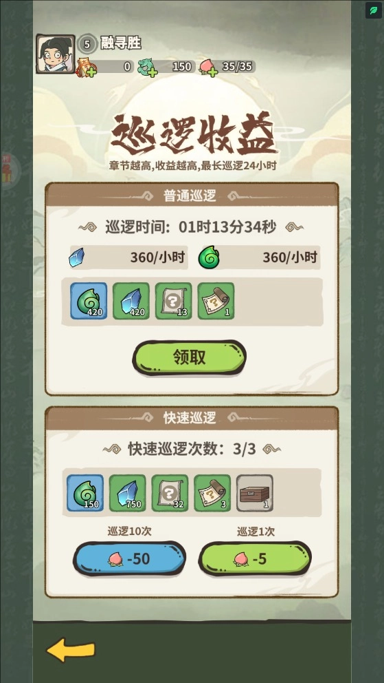 2、还能通过闯关或者巡逻升级的方式来获取仙玉。
