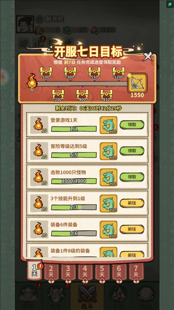 3、如以下图片所示,达成开服七日目标同样能够获取丰富奖励。