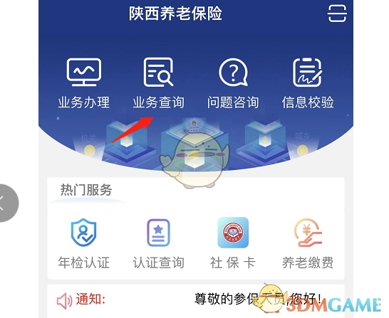 1. 打开陕西养老app,登录完成后点击【业务查询】