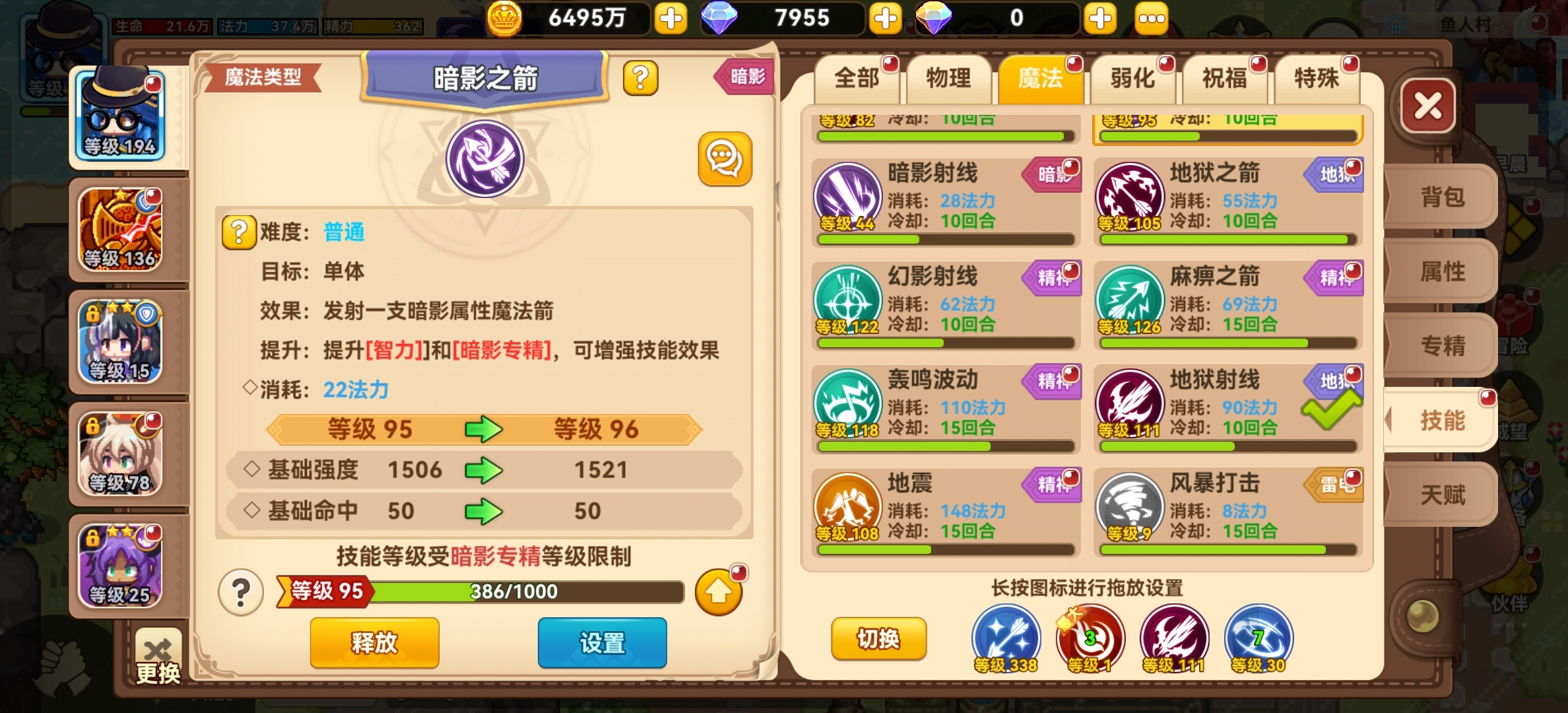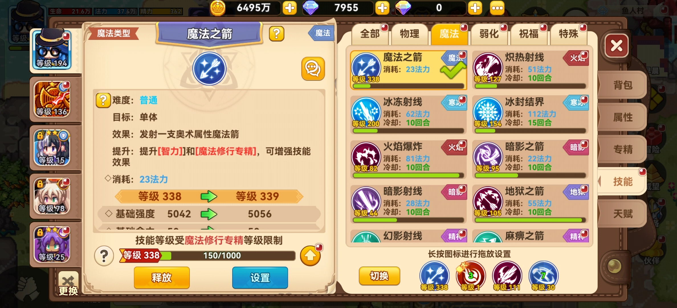 麻痹之箭(属于控制类技能,针对一般奇遇中的boss使用效果颇佳,能够实现长时间控制)