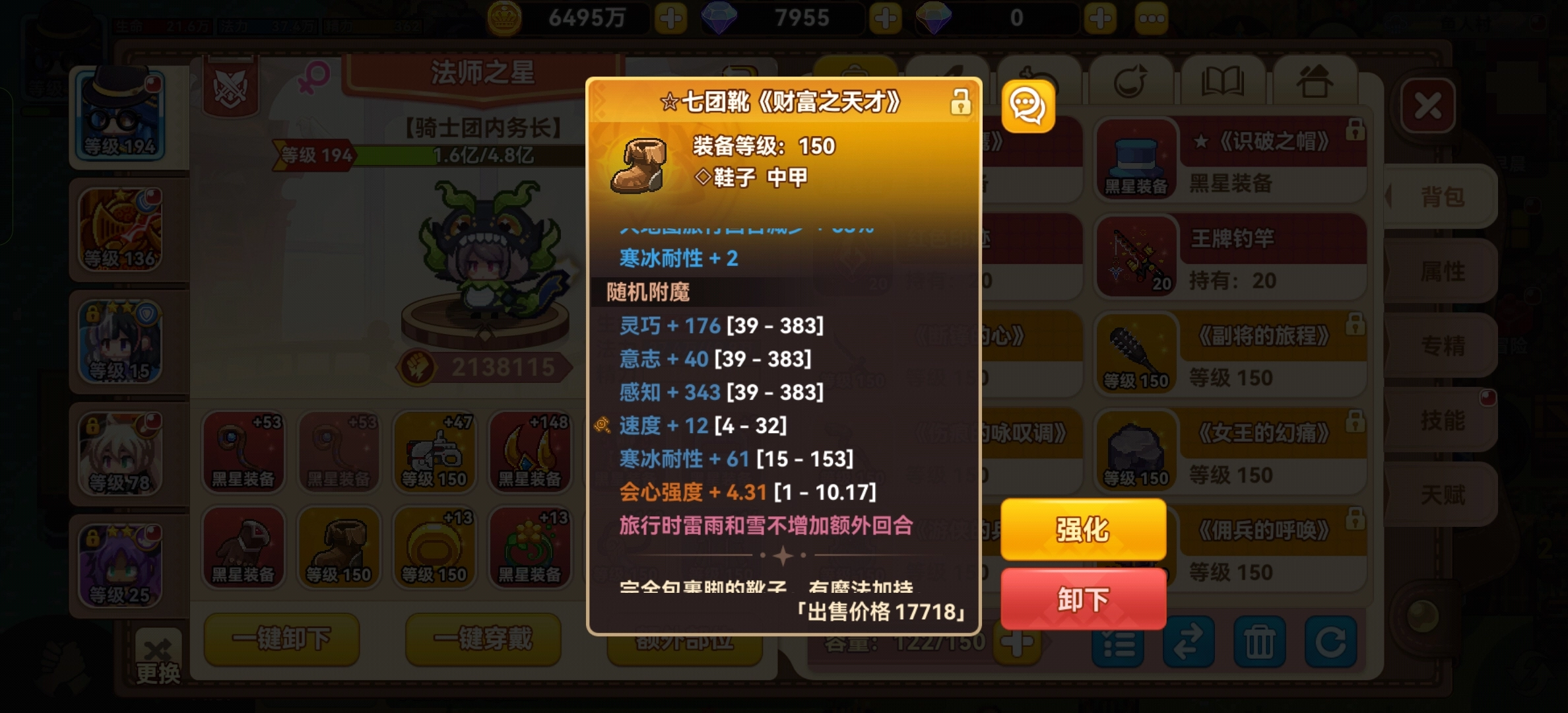 指挥者(通过扭蛋机防具类抽奖获取,经锻造后拥有40点魔法修行,加成效果尚可)