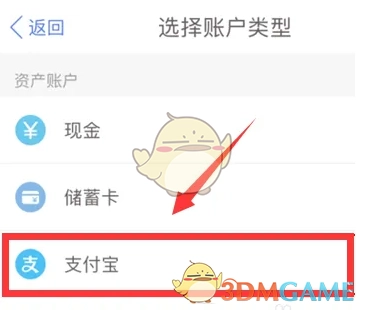 2. 挑选账户类型,点击“支付宝”选项,完成操作后具体情形如下图所示。