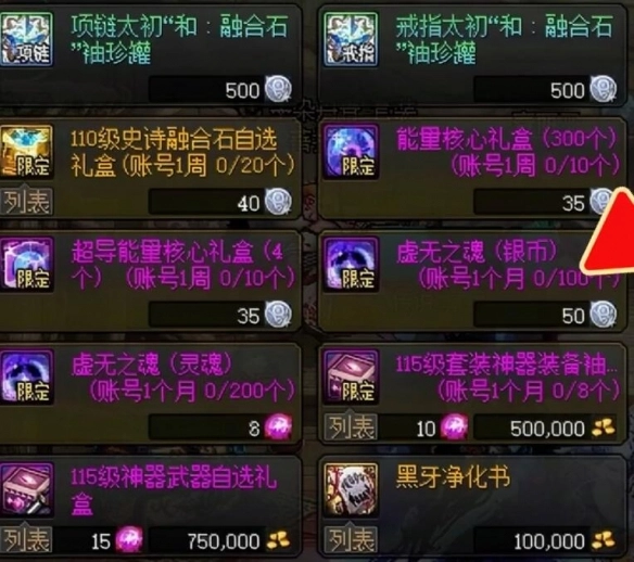 1购买1个虚无之魂需耗费50个银币,每月最多可购买100个,且每月都一定要兑换。