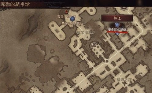 当自动寻路抵达藏书馆后,把地图打开,点击【安全区传送站】,即可直接传送至目的地。