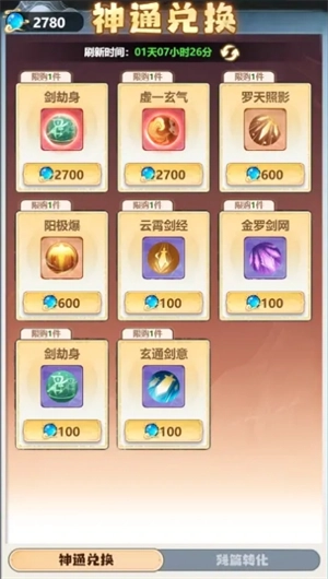 在神通装配界面开启神通兑换功能,使用“神通道韵”就能兑换对应的神通。要是兑换到重复的神通,会自动转化为神通残篇(借助残篇能够提升神通的星级与品阶)