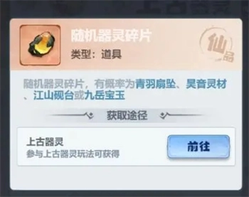 ①器灵:可通过上古器灵活动随机产出,活动结束亦可在宗门拍卖行进行拍卖获得,器灵试炼也可以获得