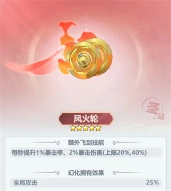 飞剑中的风火轮在使用该飞剑技能时每秒提升1%暴击率