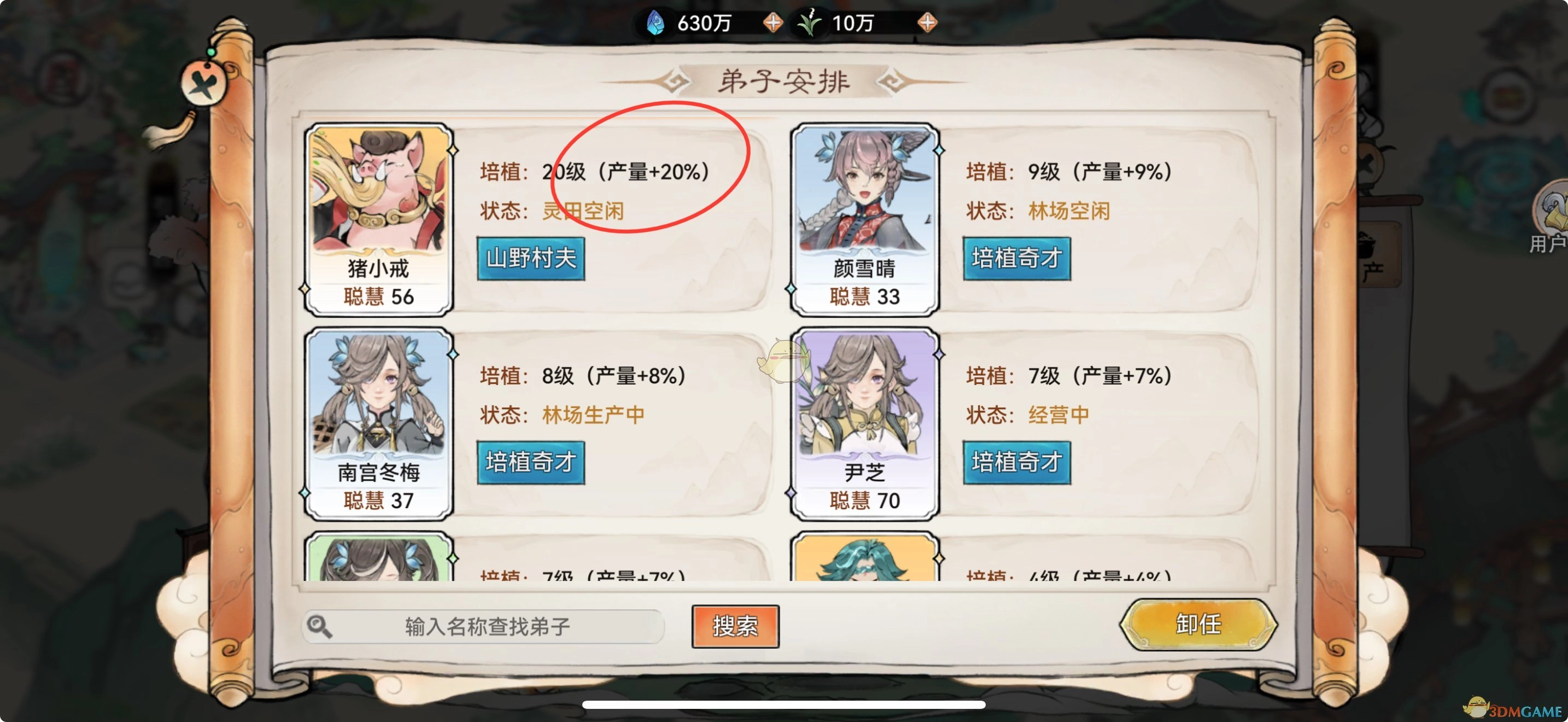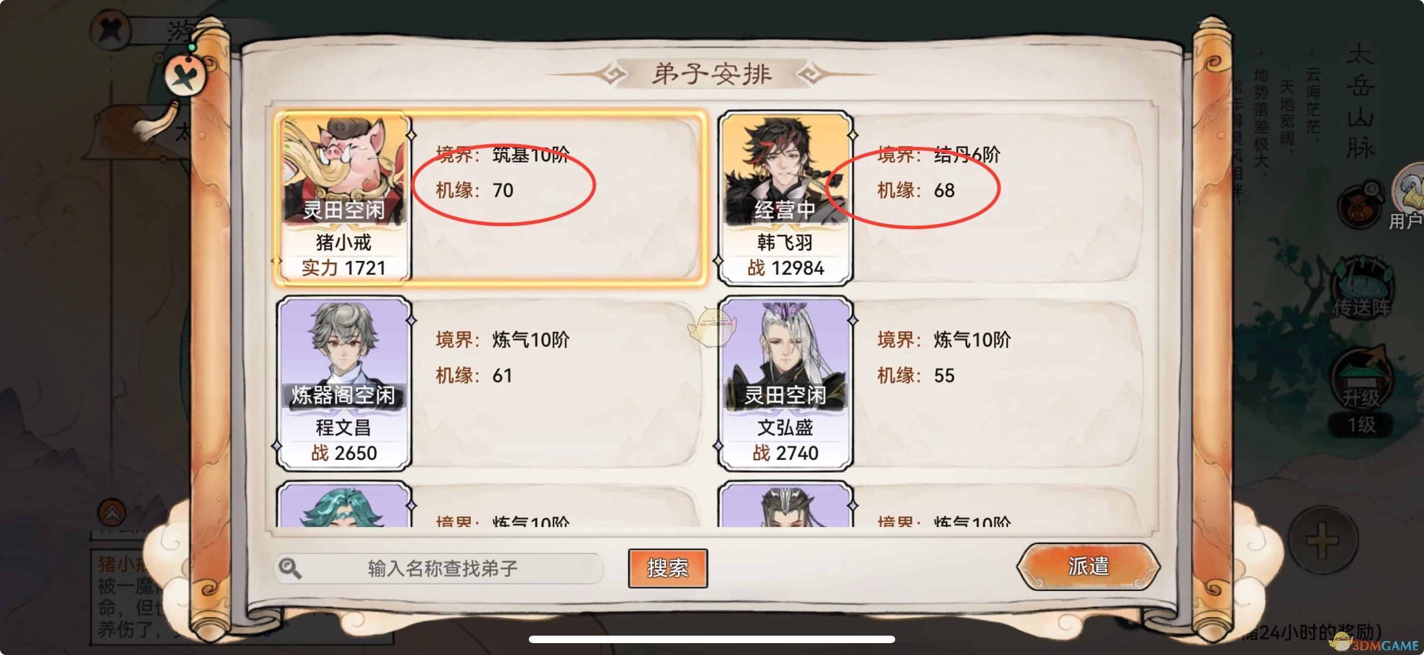 • 初期可使用普通弟子进行生产活动,后期用奇才弟子替换。