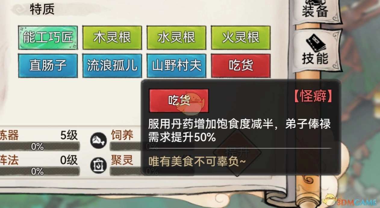 • 怪癖:大多数怪癖会拖后腿,部分无伤大雅。如果弟子有怪癖属性,可以利用丹药消除。