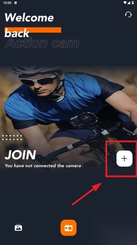 启动Apeman运动相机后,找到界面右下方的加号图标并进行点击操作。