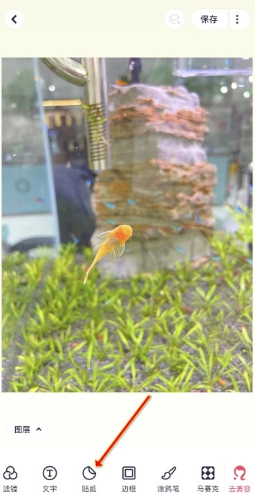 点击菜单中的“贴纸”功能。