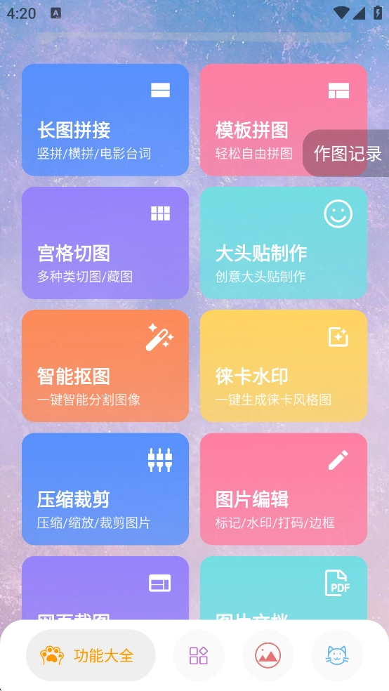 图叨叨是一款主打极简风格的拼图类应用,集成了拼图修图、模板拼图、长图拼接、电影台词制作、图片水印添加、图片打码处理、批量图片压缩以及壁纸制作等丰富功能,在日常的图片修饰与裁剪操作中能发挥显著作用。这款应用始终聚焦于修图的核心需求,全程干扰,也不会在后台擅自运行,保持着绿色纯净的使用环境,用户完全可以安心体验!