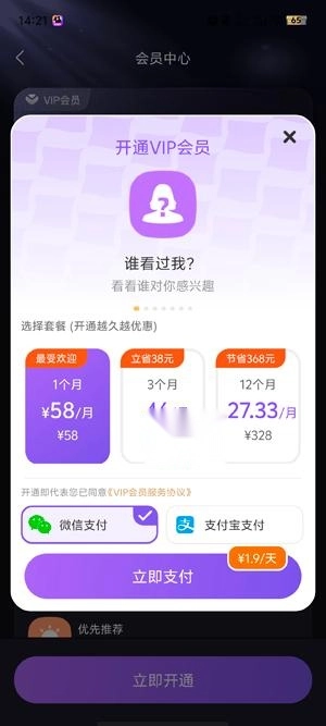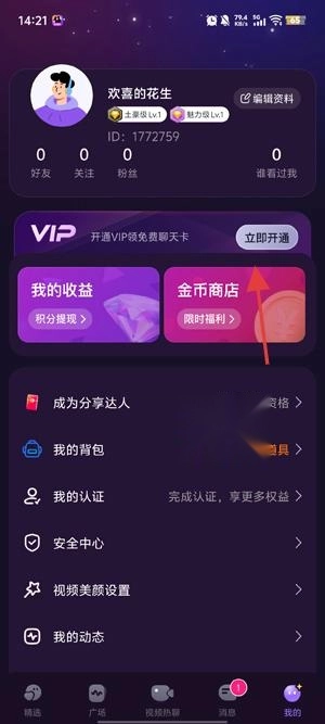 打开那款能让你在周边结识同龄人的社交应用,进入个人主页后找到并点击开通会员的选项。